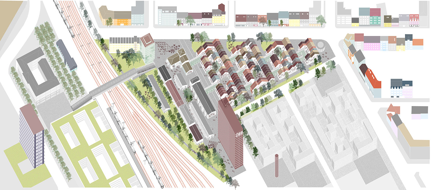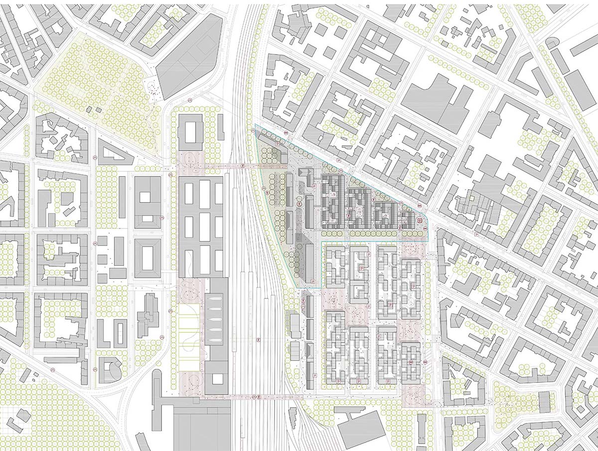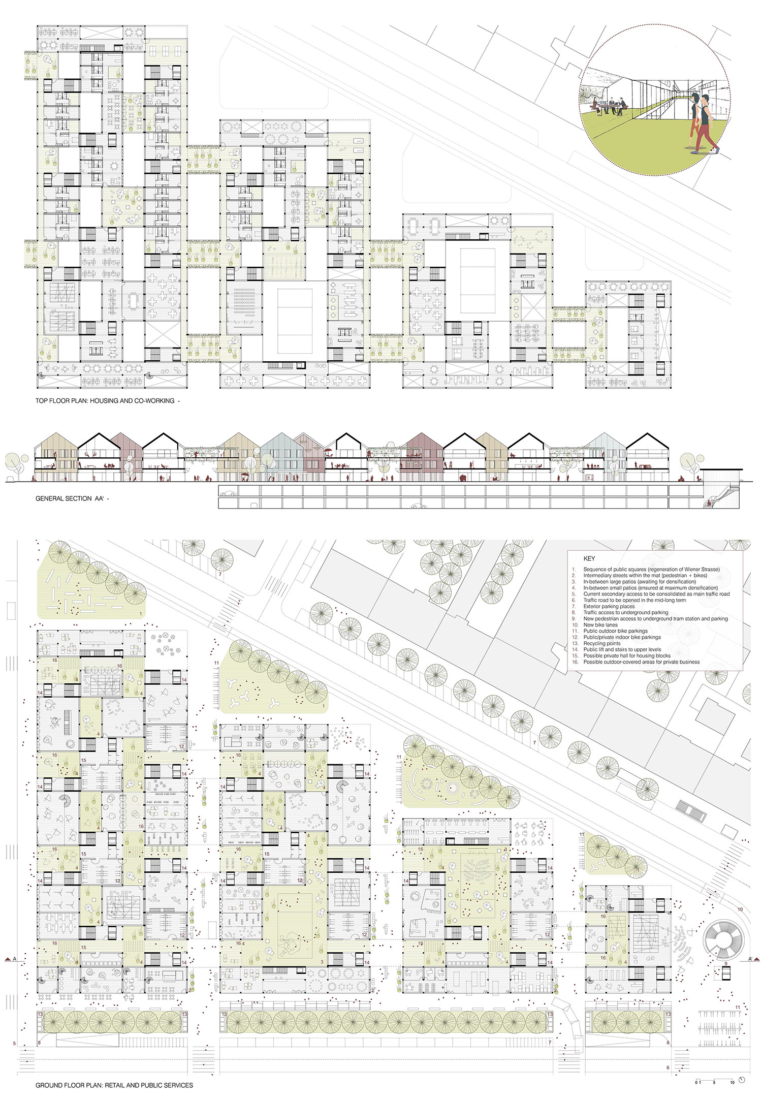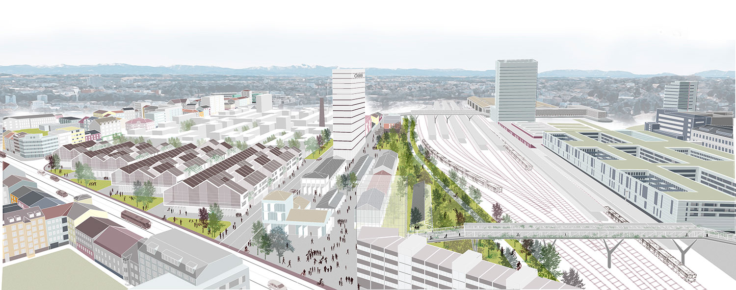The project envisages a multifunctional hub that rescues the memory of Linz’s industrial heritage and combines a high-density solution in the shape of a ‘mat’ with a gentle human scale based on an appealing indoor/outdoor articulation. Objectives: