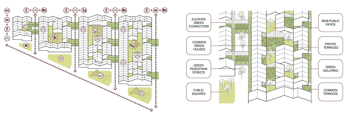 » Uso del verde como conector estratégico. Actuando como un mecanismo de articulación a diferentes escalas urbanas y arquitectónicas, el verde aumenta la calidad ambiental del conjunto y la conciencia del usuario sobre la sostenibilidad.